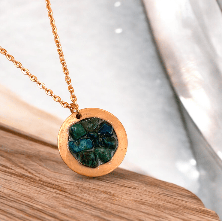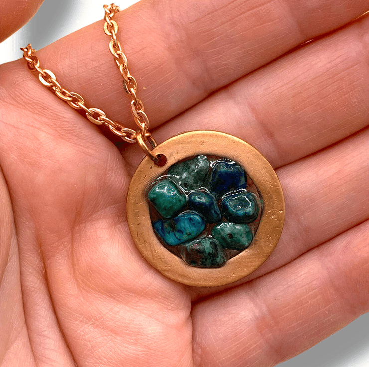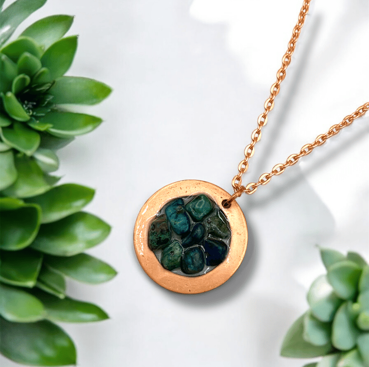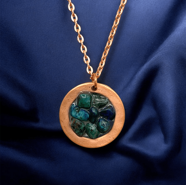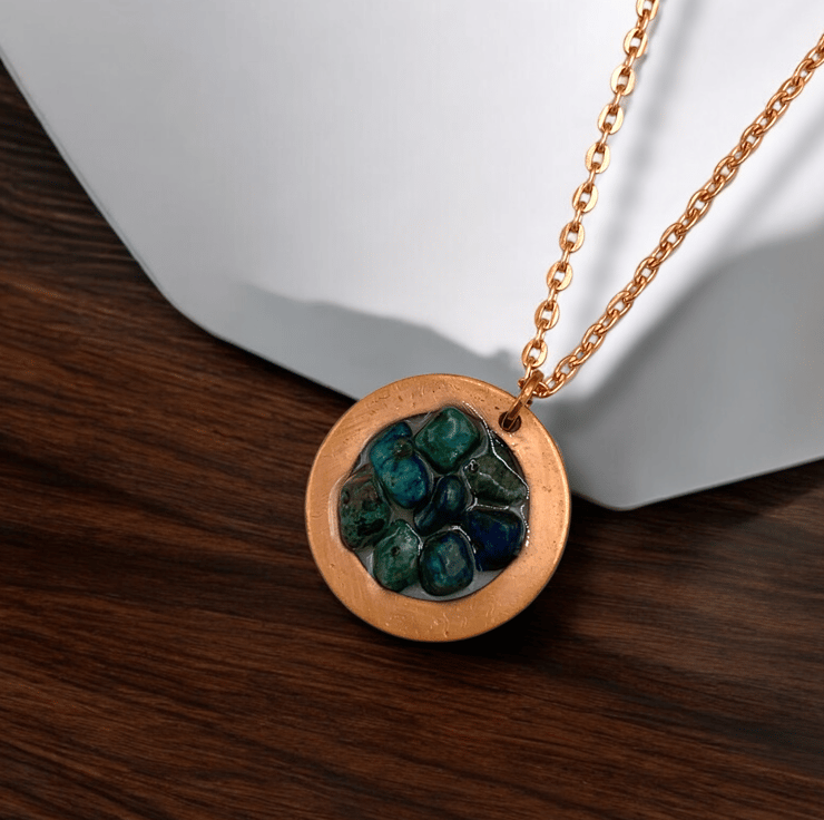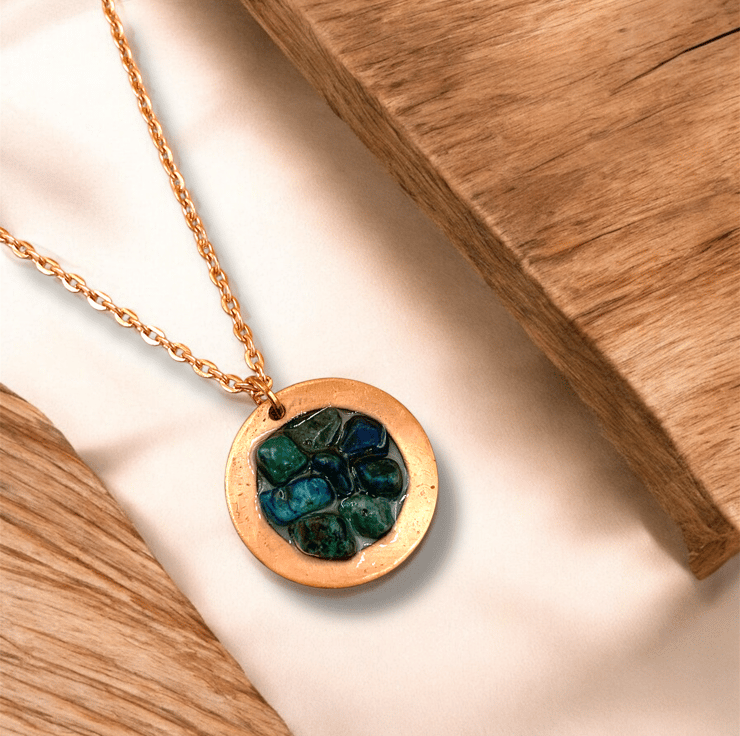Calming Chrysocolla & Copper Pendant for Sagittarius - Wellness Gem Jewellery