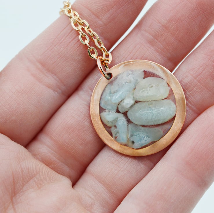 Enhance your energy with this stunning gemstone geode inspired copper and Amazonite pendant! Handcrafted and bringing together the powerful benefits of Copper and Amazonite, plus incorporating links to zodiac and chakras. Elevate your style and wellness with this unique piece.
