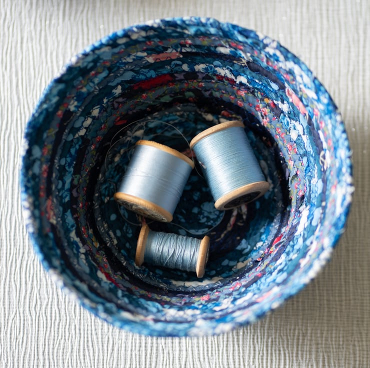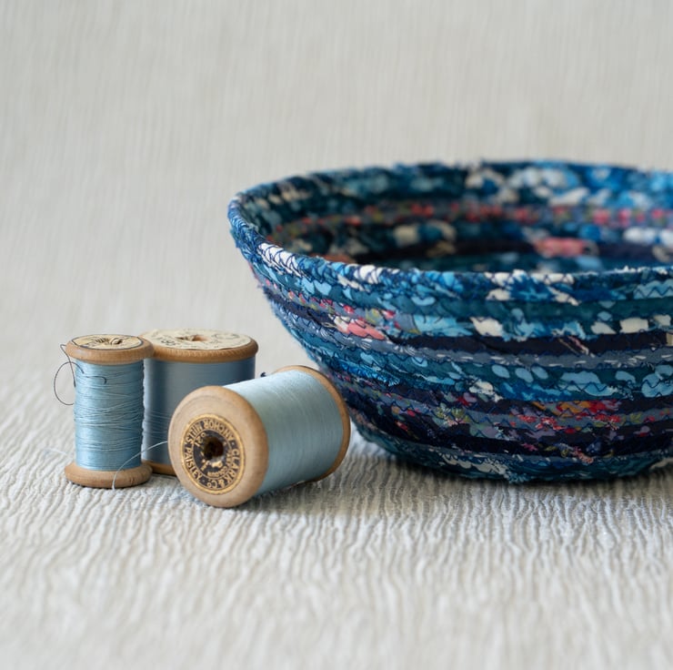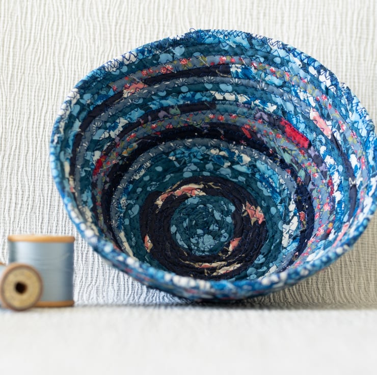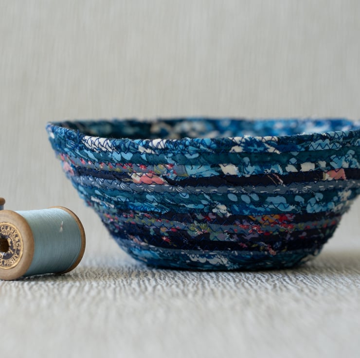 This particular bowl includes some Liberty fabric. Most of the fabrics used are left over from other projects. It's rewarding to make something from that might otherwise have been waste.