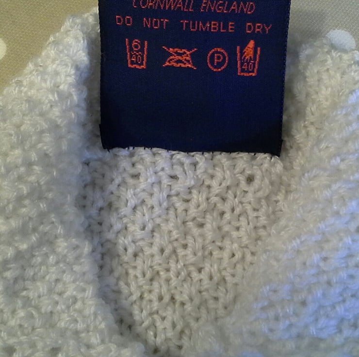 Baby knitwear is designed and hand crafted by Demelza Designs in Cornwall meeting UK baby safety standards, Only branded premuim acylic, acrylic/natural fibre blends or pure natural fibre yarns are used in baby knitwear which conforms to BS984/76 standards.
