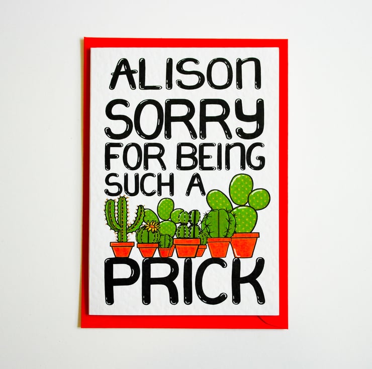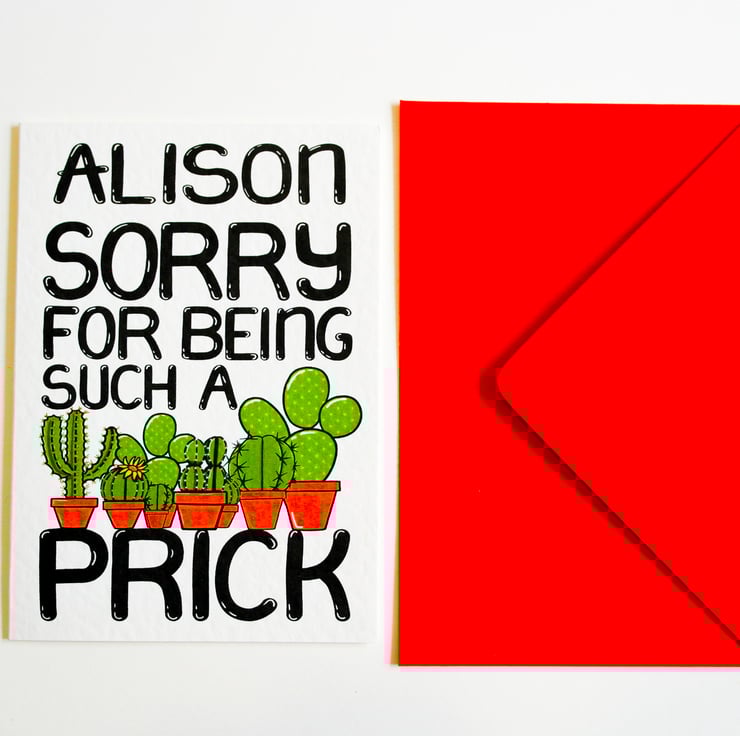 Sorry for Being a Prick Personalised Funny Apology Card