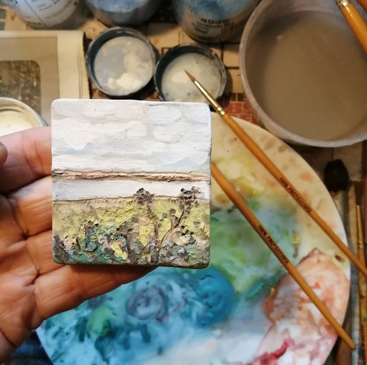 These miniature landscape, have been created as a small version of the larger landscapes listed on my site, and are inspired by my local coastline, on the Inner Forth, parts of which are an RSPB site, home to many animals and birds.