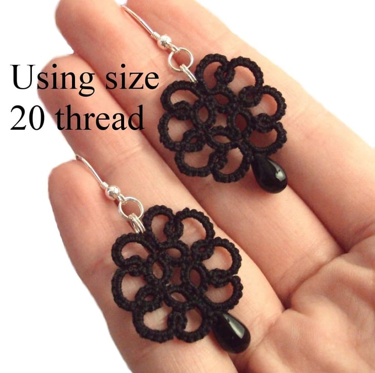 Difficulty level: Intermediate. Instructions are for size 10 thread. You can also use this pattern to make earrings in size 20 thread.