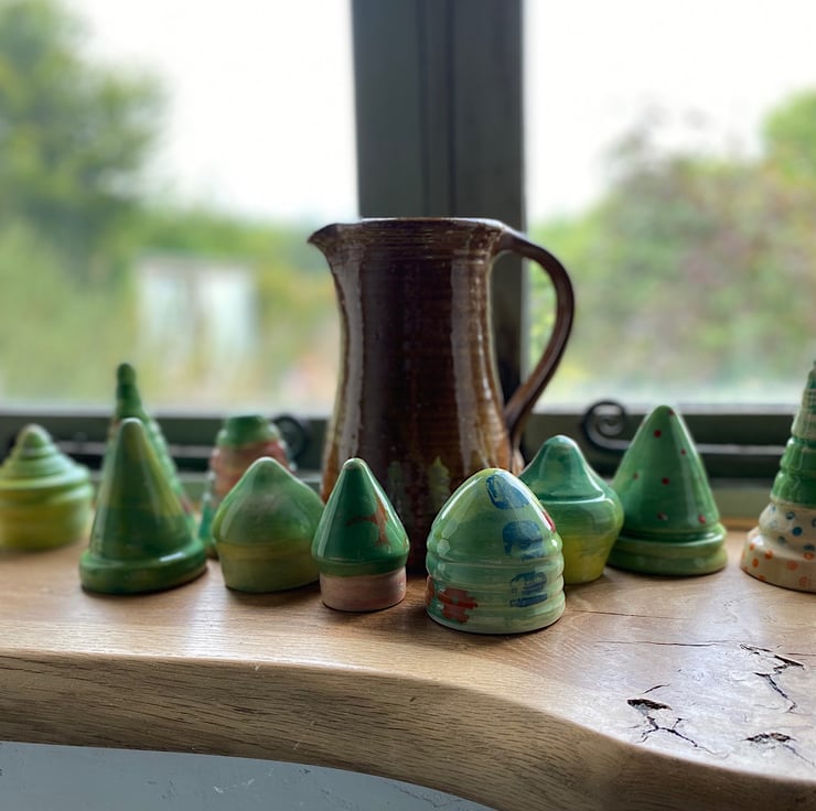 Set of two hand thrown ornamental Christmas trees.