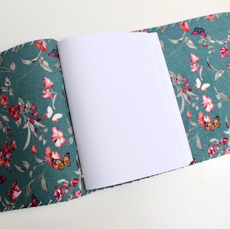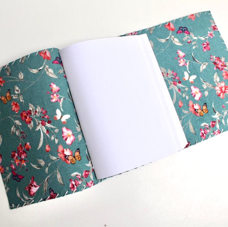 All lined with a gorgeous floral (or non floral) fabric and filled with plain paper, lined paper, recycled paper or watercolour paper.