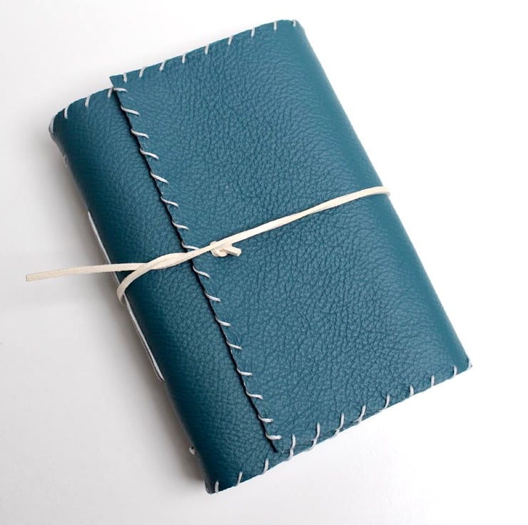 A6 Fold Over Blue green Leather handmade notebook floral fabric lining paper