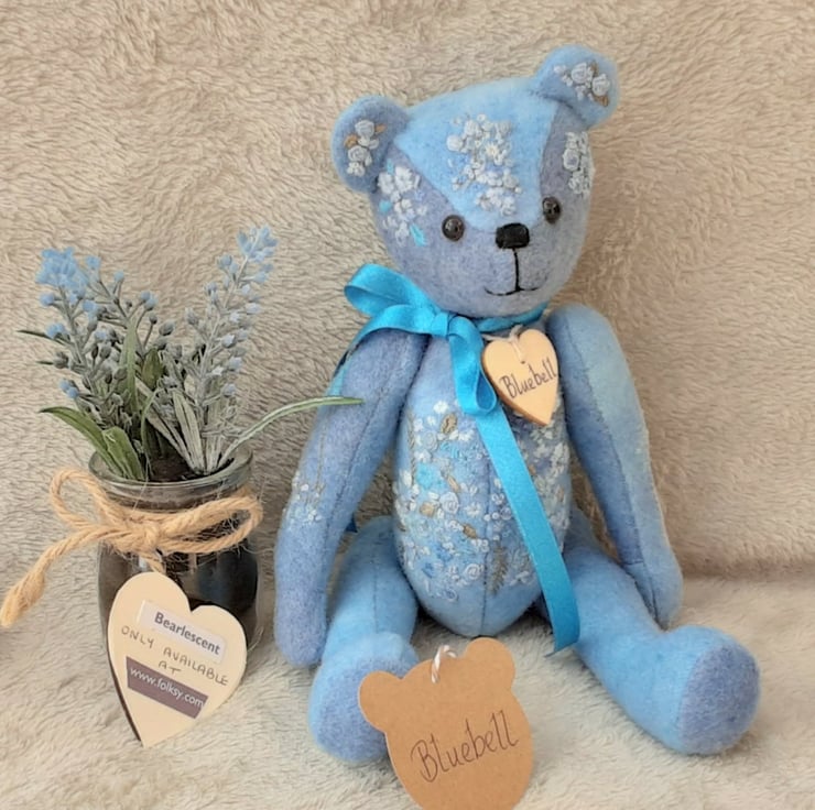 Bluebell is a beautiful unique bear, designed as a keepsake gift to be enjoyed for many years to come. She would make a lovely gift for someone special or a unique addition for the teddy bear collector. My bears are designed as adult collectables only and are not suitable for children under 14.