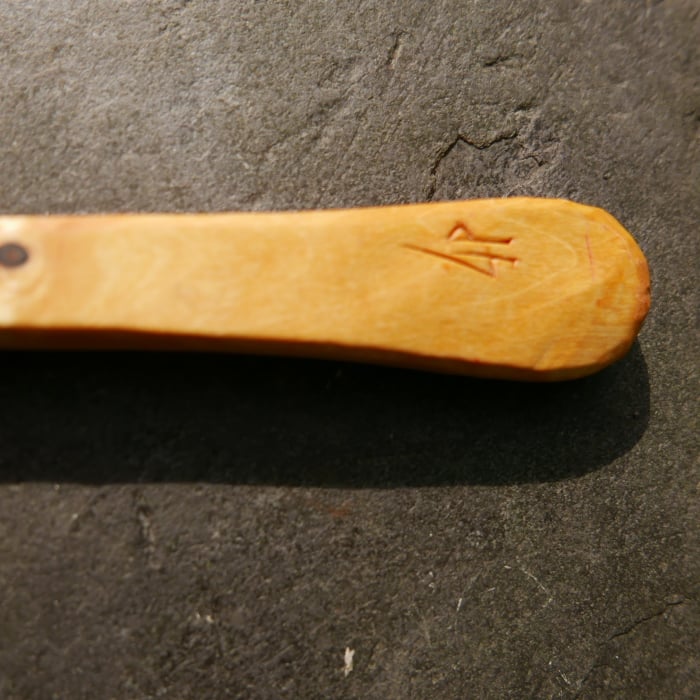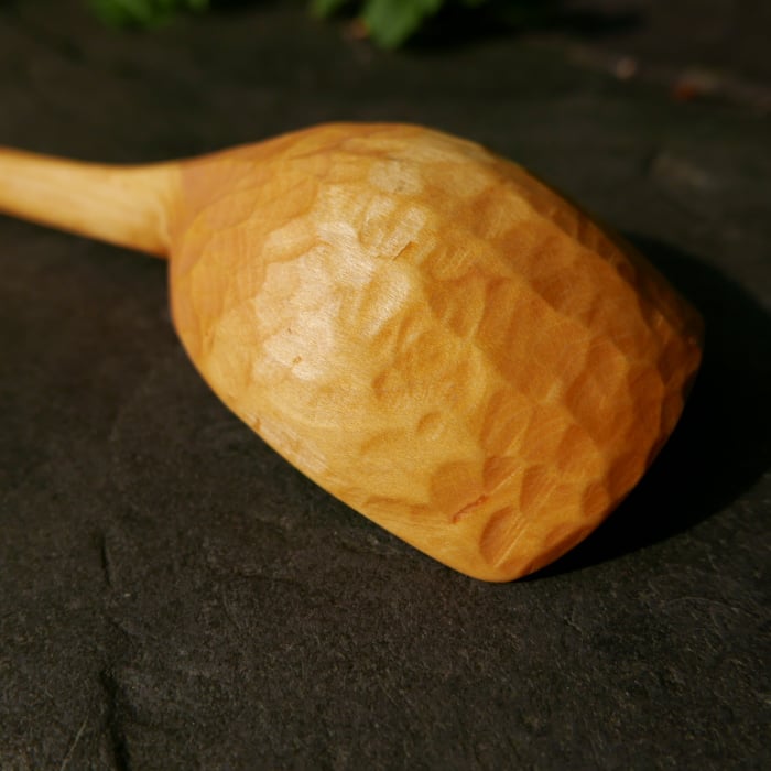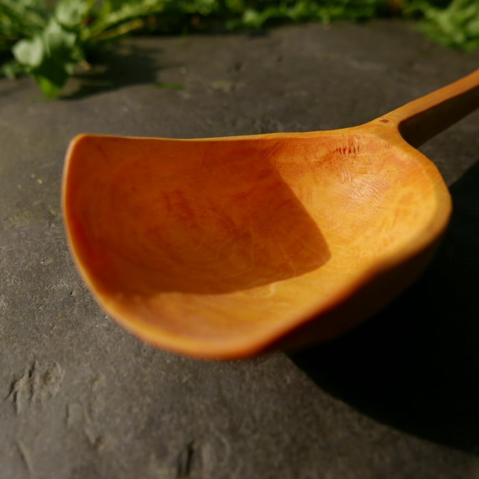 A kitchen scoop carved from sycamore wood.