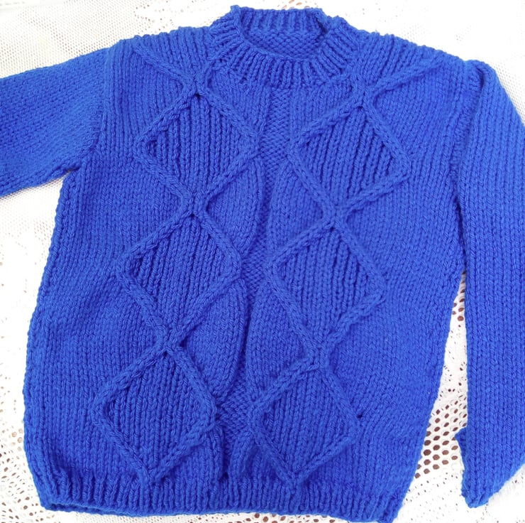 Children's Hand Knitted Chunky Cabled Double Diamond Patterned Jumper, Child's Cabled Jumper, Winter Jumper, Winter Sweater, Children's Clothes, Birthday Gift, Kid's Clothes