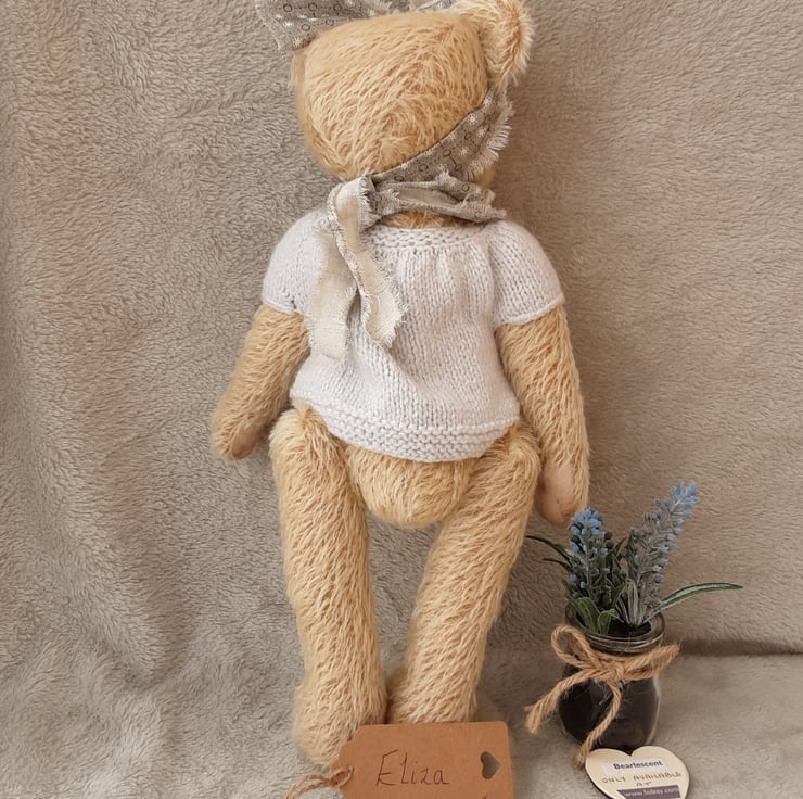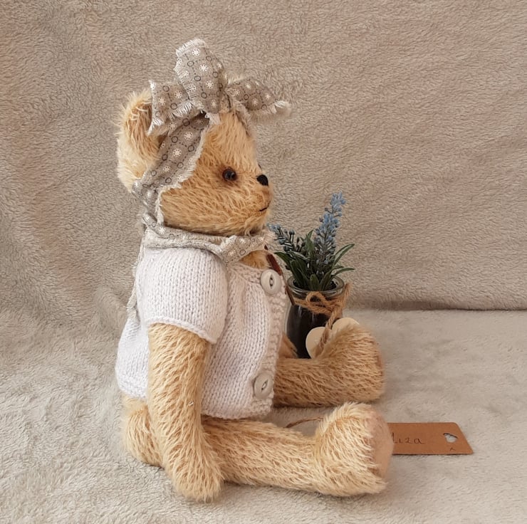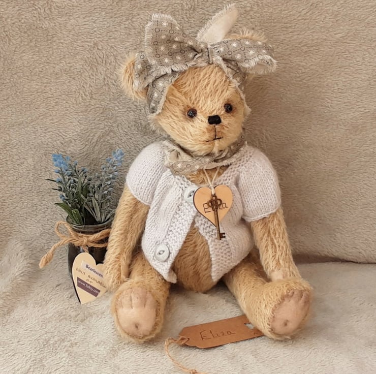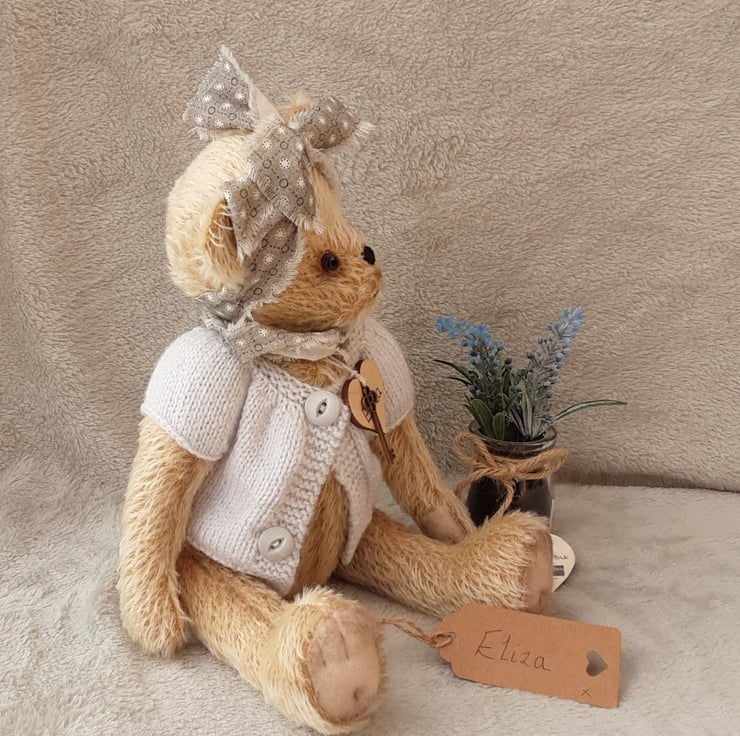 Eliza is a lovely traditional bear and my favourite style, also my largest bear. She has a lovely aged look to her, a beautiful one off bear suitable for the adult collector. She has a lovely soft personality and would suit any surroundings. She has been created as a beautiful heirloom gift or an addition for the adult collector. My bears are collectables therefore not suitable for children under 14 years of age.