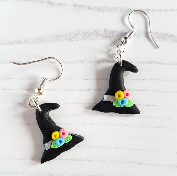 The hats are then fixed onto silver plated hook style fixings for a drop effect.