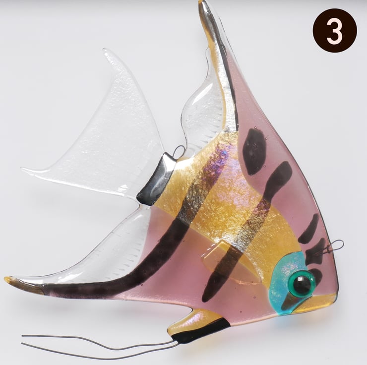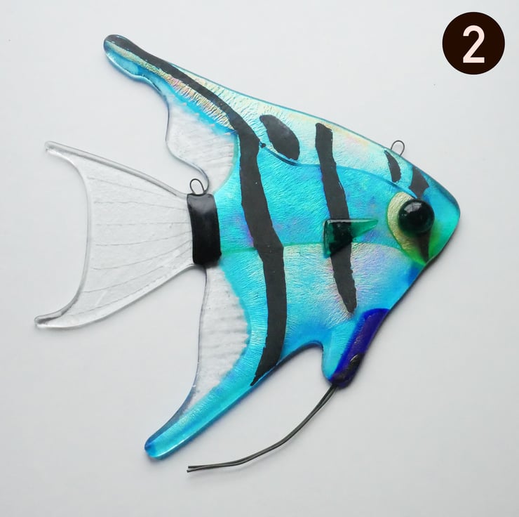 These glass angel fish are designed to work just as well as hanging wall decorations or sun catchers.