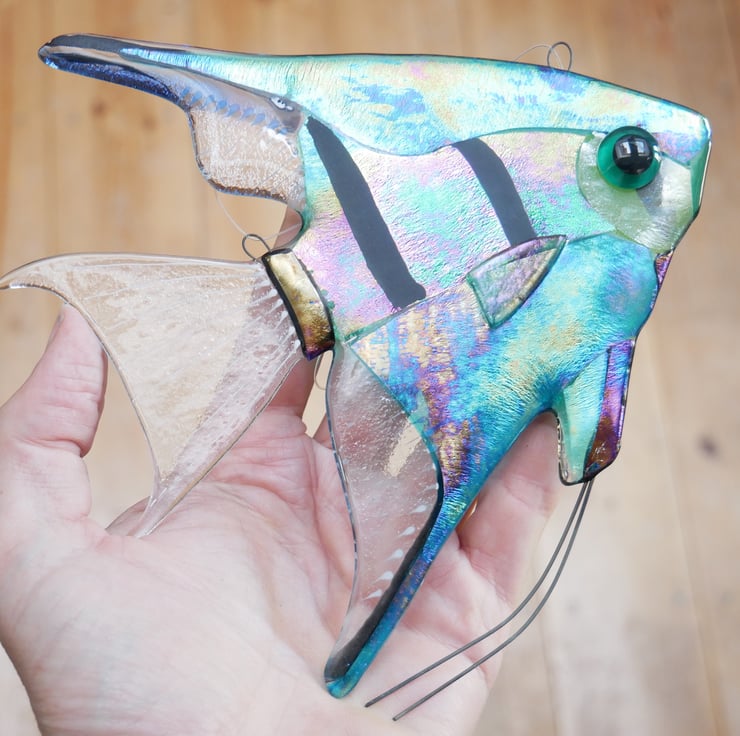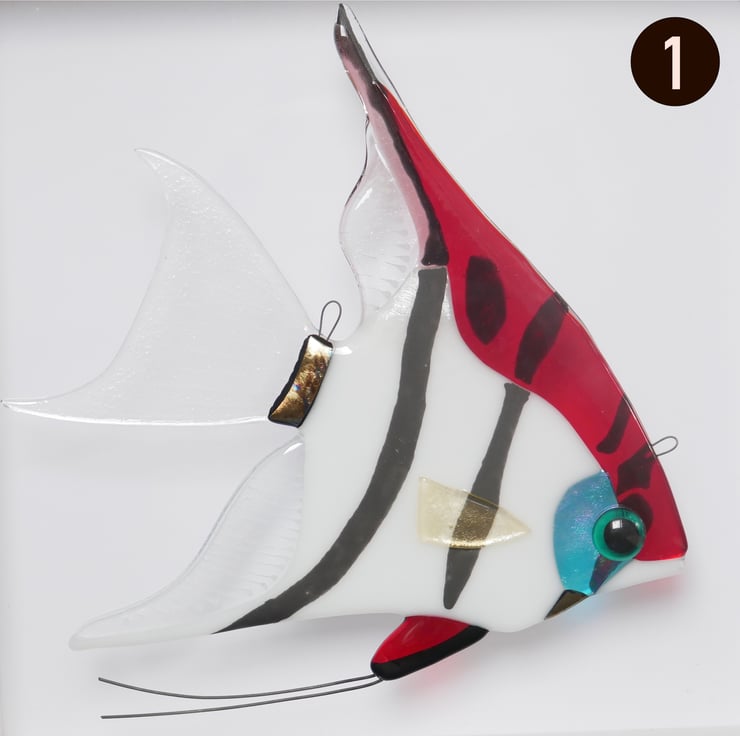 Each uses a unique mix of colours and markings so no two fish are the same, and incorporates some luminescent glass which gives a metallic shimmer in certain lights.
