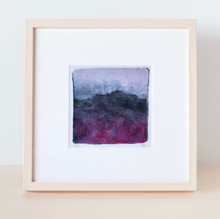 Inspired by the spectacular purple heather on the Eastern Moors near Stanage Edge in the Peak District, this unique landscape print represents a moment of quiet contemplation on the moors, a time to disconnect from the hustle and bustle of everyday life.