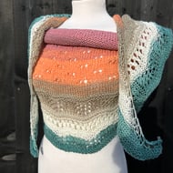 Let's say Hello to the last month of the year with an unique hand knitted shawl scarf in wintery white colours and interesting texture. All my projects are handmade by me and ready to ship as the shawl you see pictured, it is the shawl you will receive.