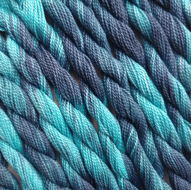 - Perle number 5 embroidery thread in bright blue - beautiful variegated hand-dyed yarn by Norfolk indie-dyer Sandra Beech, more than enough to complete your kit