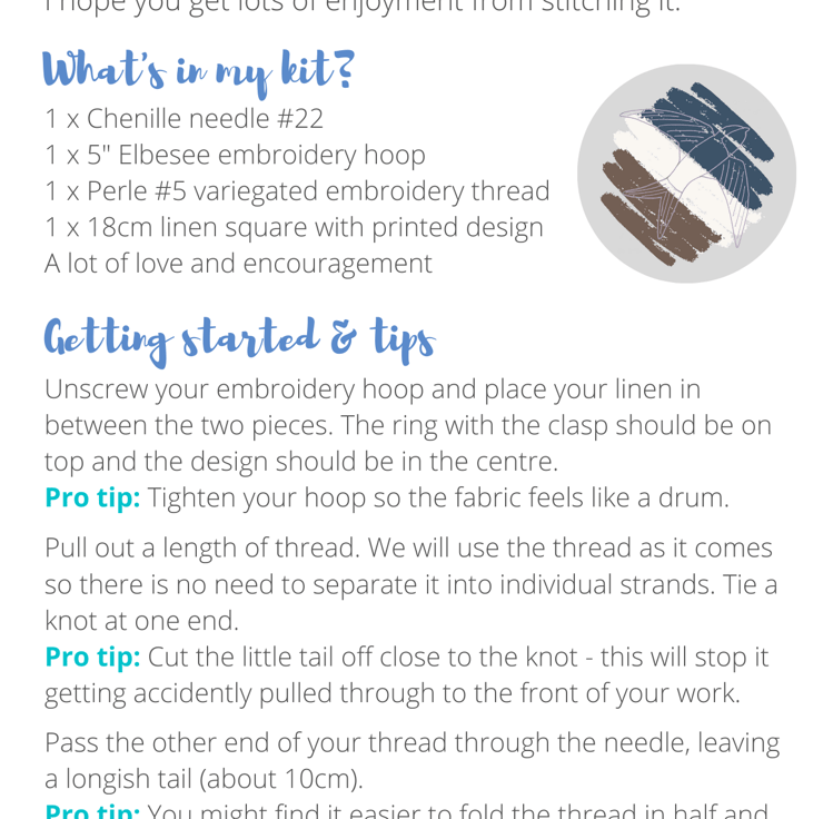 Full instructions, stitch guides and tips are included, so this kit is a perfect place to start your love of embroidery.
