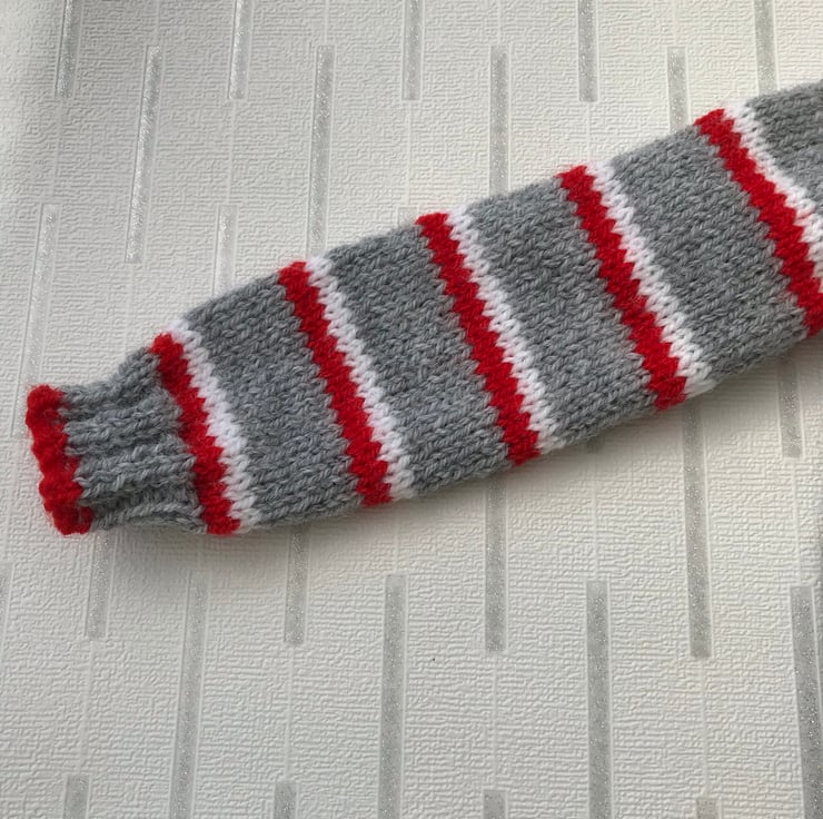 The pattern, designed by Jane Burns, is sized for a 1-2 year old and the measurements are chest 52cm, length 31cm and sleeve 23cm.