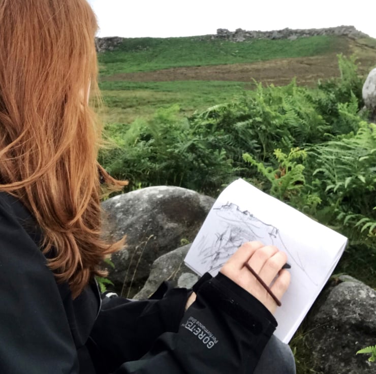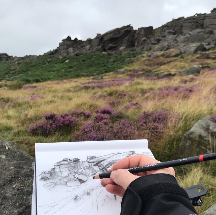 The wild character of the Peak District with its windswept moors, rugged gritstone tors and escarpments provides a welcome escape from our towns and cities, a vital space to breathe and reflect. My work is inspired by the sketches I make and the photos I take while I'm walking there. I often go back to the same places, trying to capture the energy and changing mood of the landscape, whatever the season.