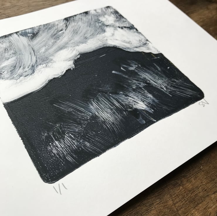 Drawing inspiration from the mesmerising gritstone tors and edges of the Peak District, this unique, original landscape print captures the magical moments of solitude and wonder one experiences while roaming the moors.