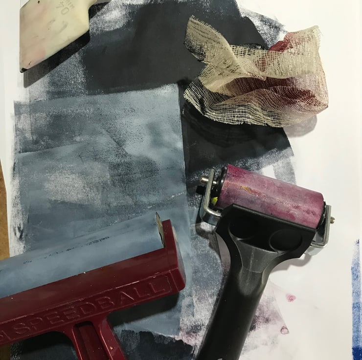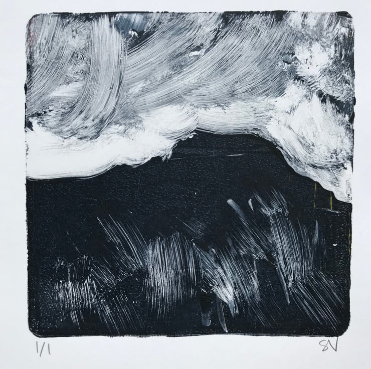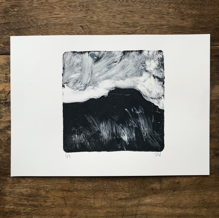 This ORIGINAL monotype print is made by rolling acrylic paint thinly onto a gel plate, then working directly into the paint. The image is then transferred onto paper to create the final image. A single print is made using this process, making it completely unique.