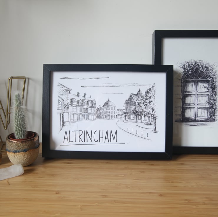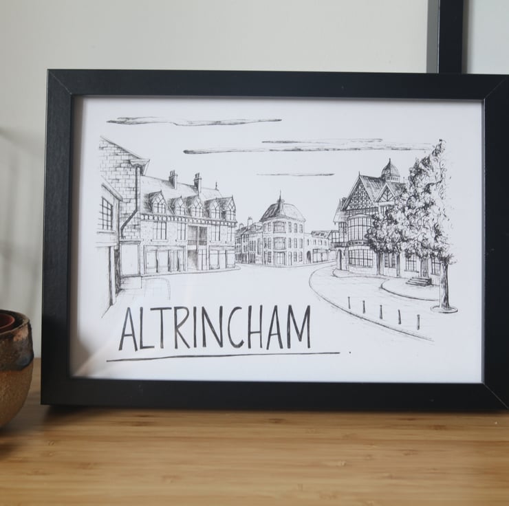 After a few years of doing Altrincham Market, many people asked me to do a local skyline. So I eventually settled on this area of the town as it shows some of the oldest buildings and I feel it really captures how pretty the area is.