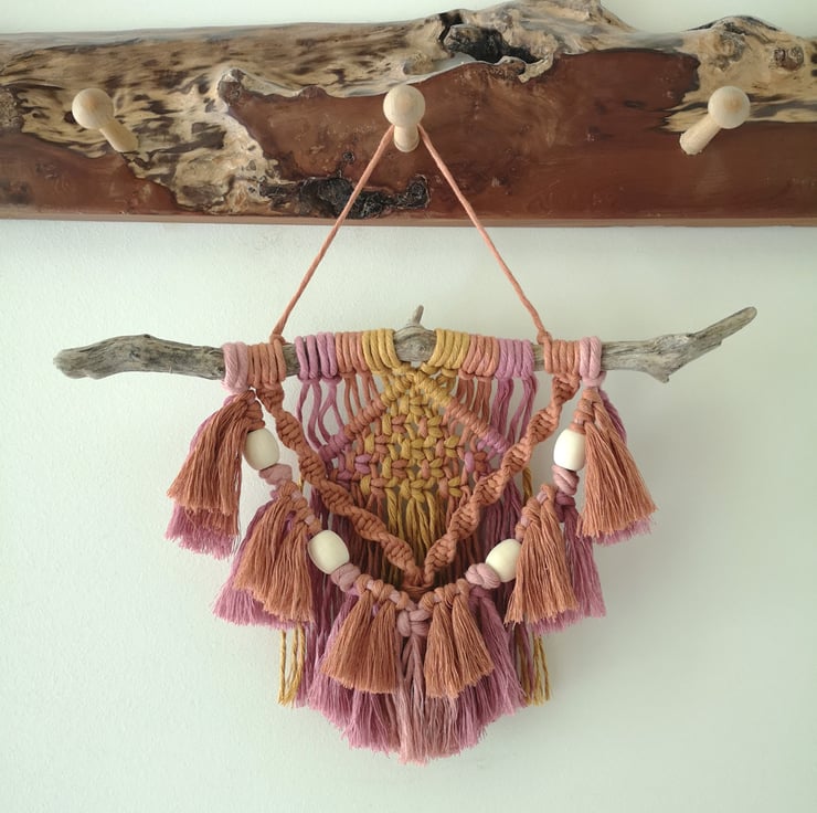 The design of this wall hanging is built around the piece of driftwood, which I collected from my local beach, this gives it a unique look.
