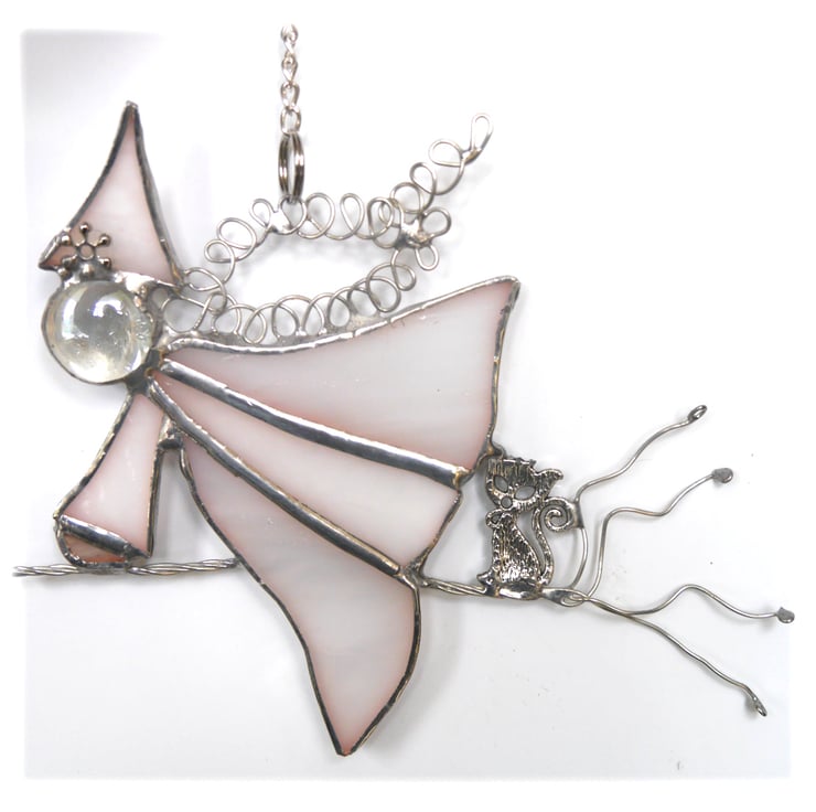 The suncatcher hangs from a silvery chain securely attached by solder to the top.