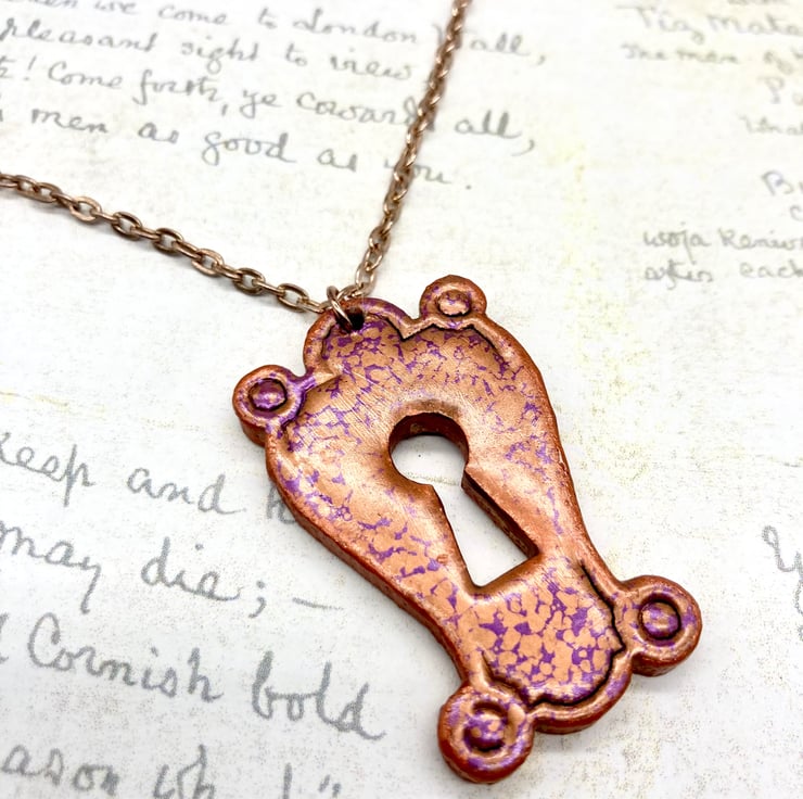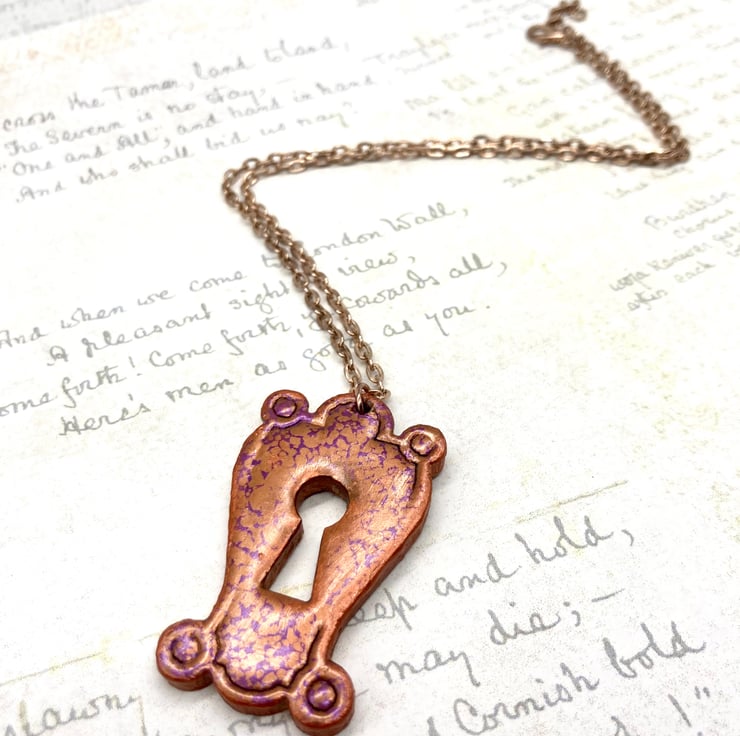 This unusual pendant has a bit of a steampunk feel to it, but fans of Ironmongery or furniture restoration, will probably recognise this as a lock plate or Escutcheon!