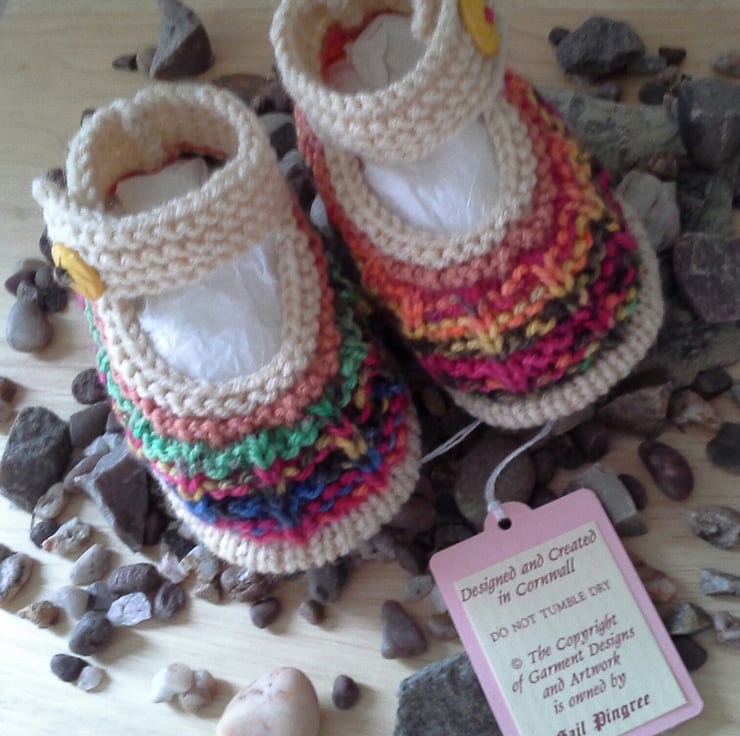 A sweet practical pair of unisex hand knitted baby shoes/booties for any little one to wear whilst out and about. They would make an ideal small token gift for a baby shower or for an aqatance/work colleague you know is expecting a baby.