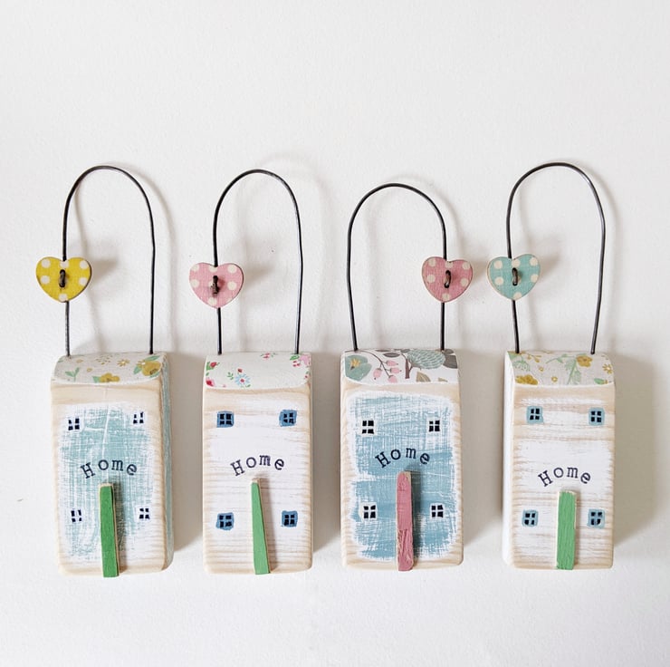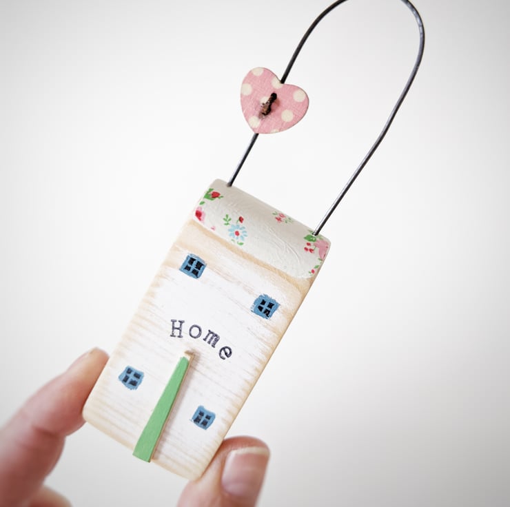 This hand-painted little wooden house has a tiny painted door and a floral roof.