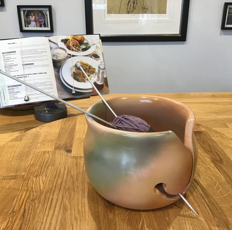 This larger yarn bowl, which at 140mm in height and 190mm in diameter, is large enough to hold two 50gms balls of yarn, is ideal for the ambitious knitter requiring two balls at the same time or one larger Hank or skein.