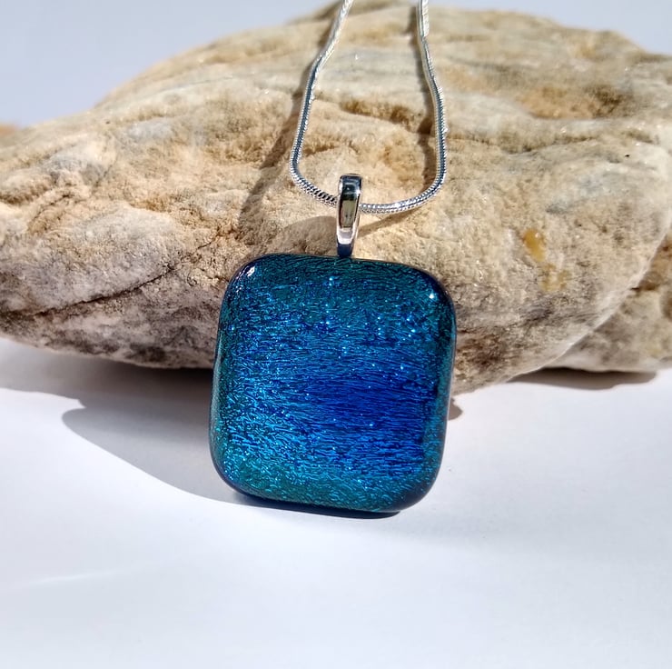 The dichroic glass used in this design adds a fantastic element of sparkle which brings the pendant alive