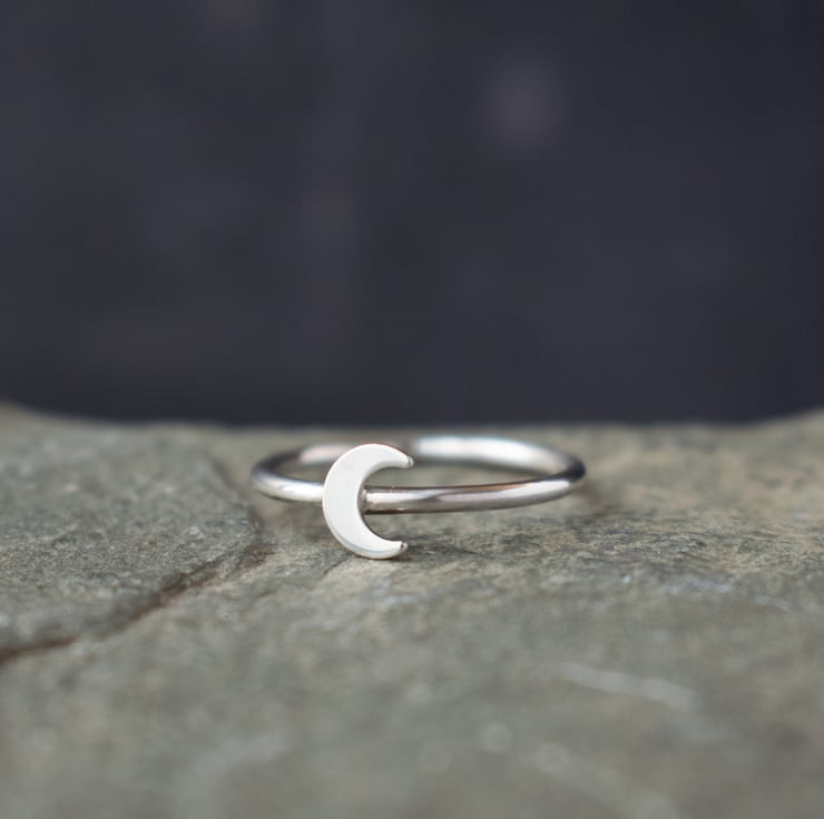 A tiny moon nestles on a sterling silver band to create the cutest little ring. Perfect for a minimalist style or layer up for that boho look.
