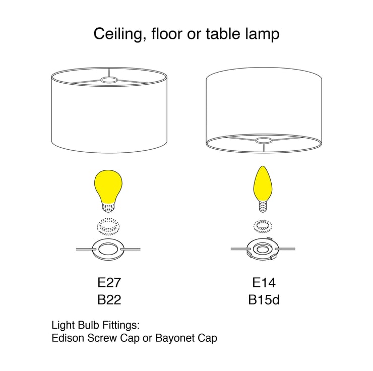 Light Bulb Fittings: Edison Screw Cap (E27, E14) or Bayonet Cap (B22, B15d).