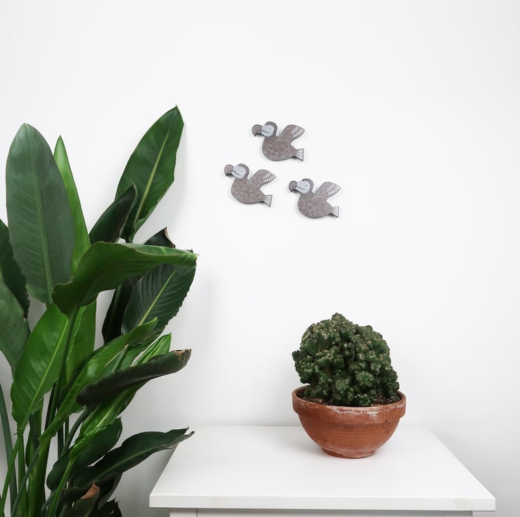 You can hang these wooden birds on a wall using hooks or a double sided tape (both attached).