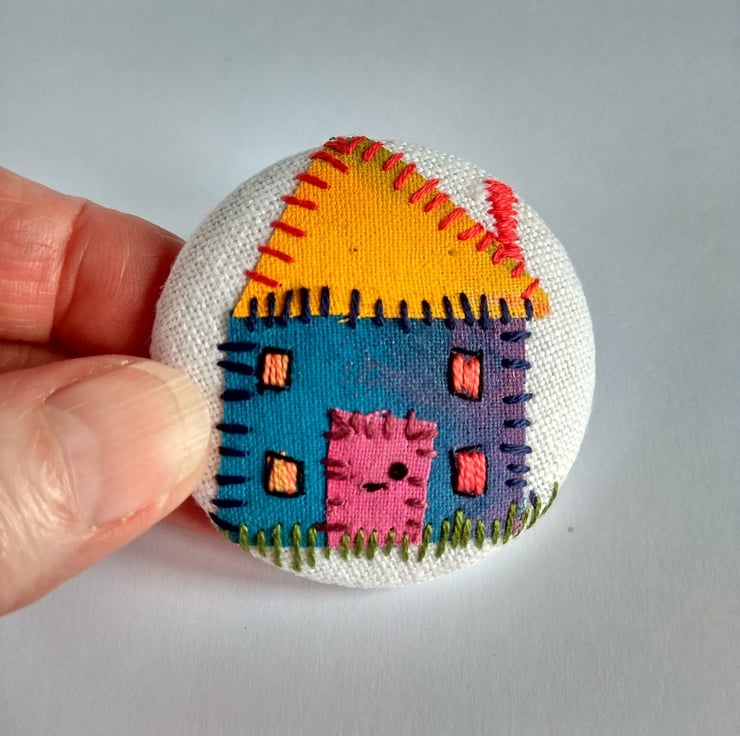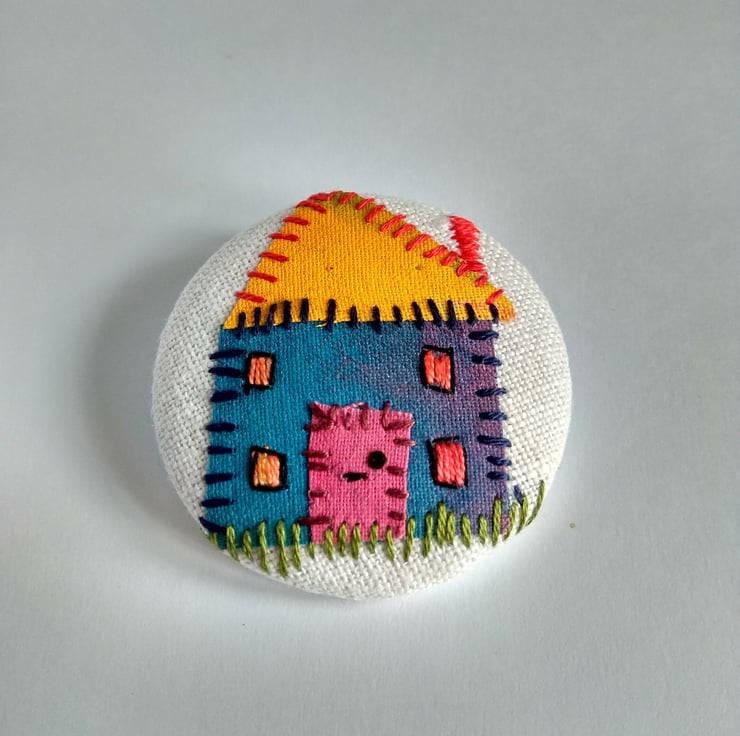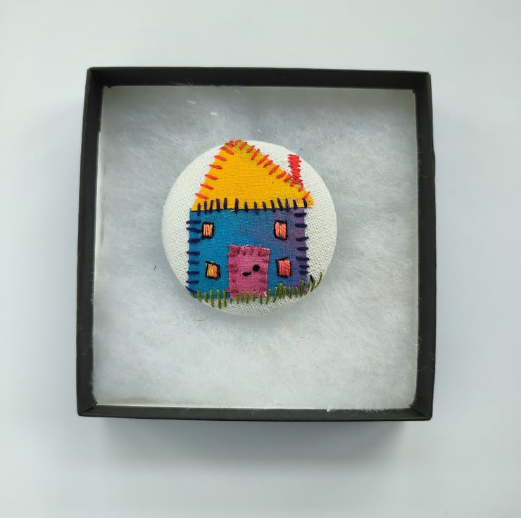 A hand stitched brooch using my own painted fabrics.