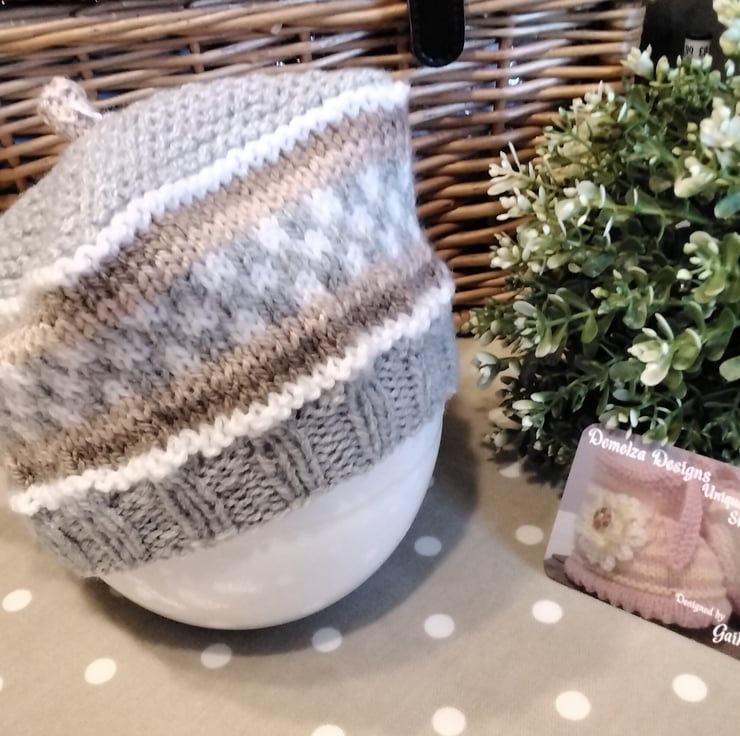This is a genuine designer product protected by copyright. It has not been reproduced from any commercially published knitting pattern. Please respect the designer's full time profession, skills and modest income for hours of quality workmanship by not trying to replicate it. This includes using using different colourways, trims and stitch formations.