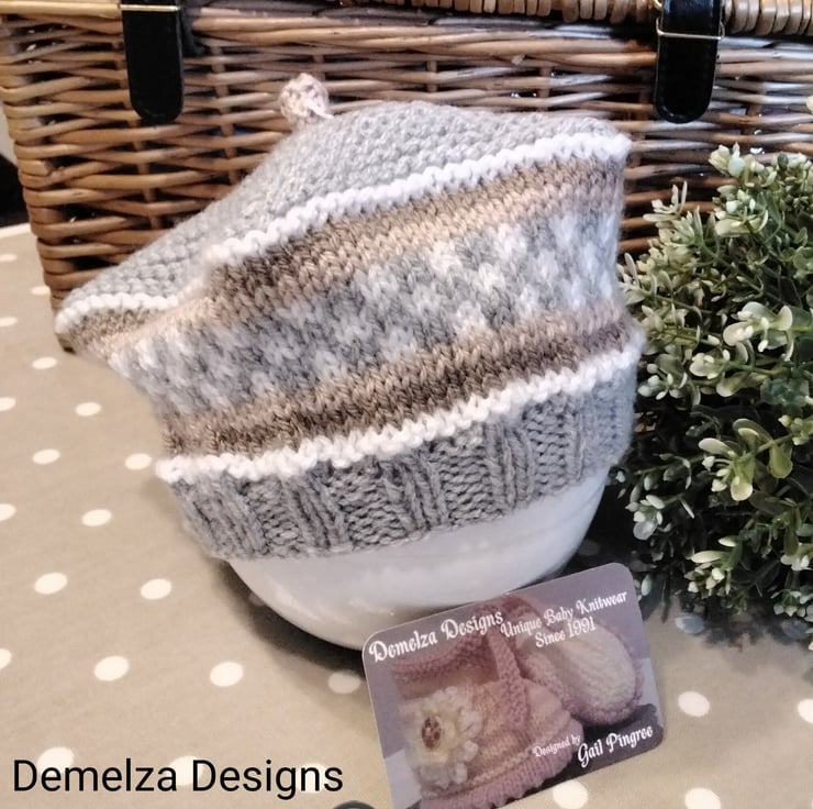 Designer Hand Knitted Baby Boy's Fairisle.Beret Hat 3-9 months size