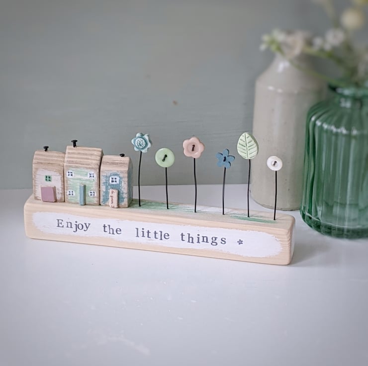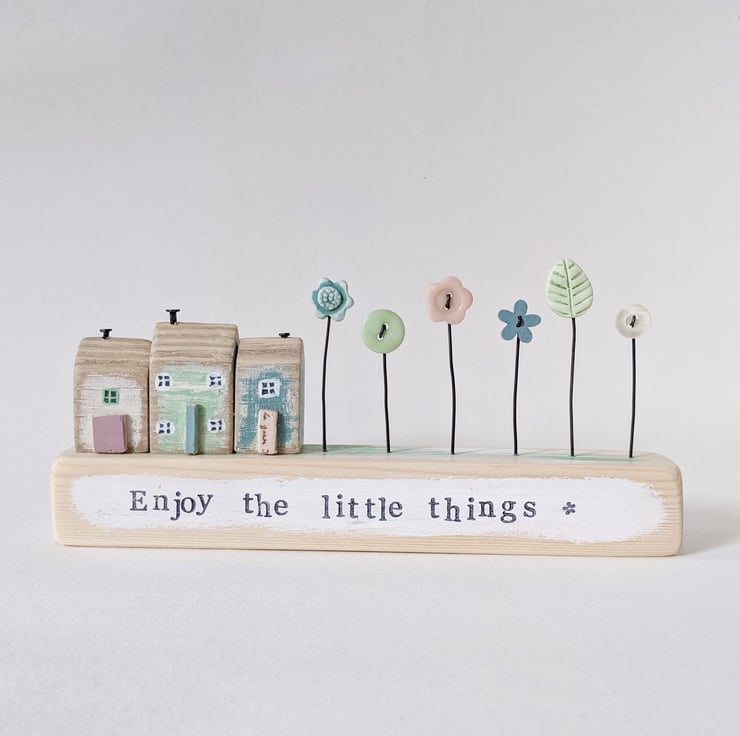 Hand stamped on the front are the words 'Enjoy the little things'.