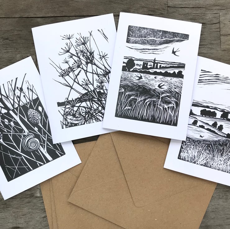 Images taken from lino cuts by Suffolk printmaker Beth Knight.