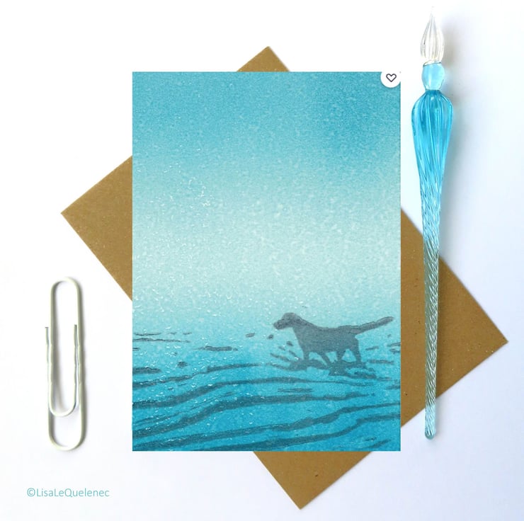 Moonlit walkies II art card artist card beach walk dog walking cello free
