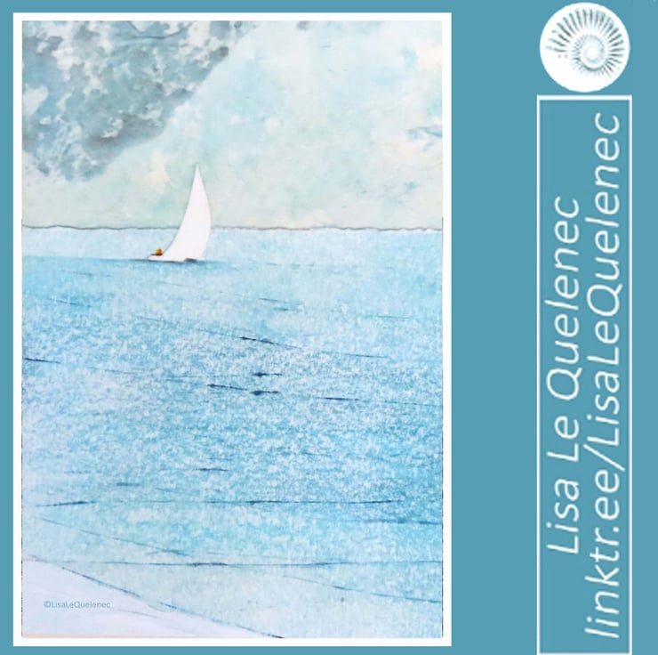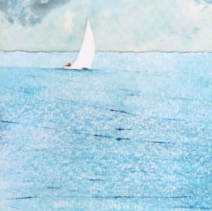 Summer sailing seaside blank art card.