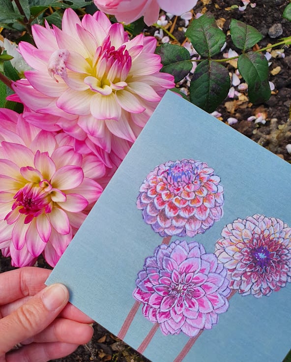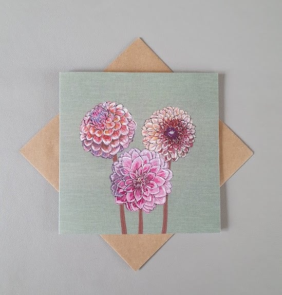 Dahlia card, blank cards, flower card, thinking of you, just to say