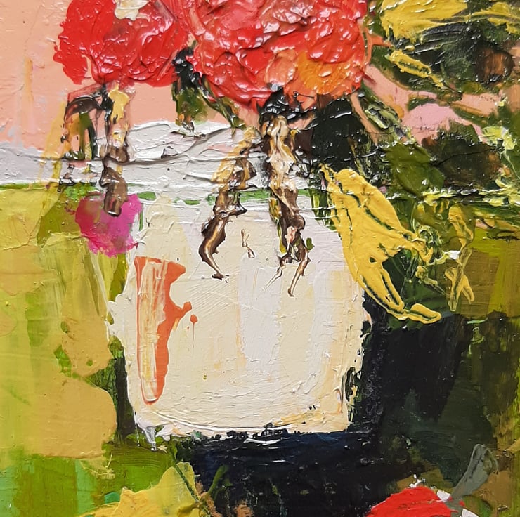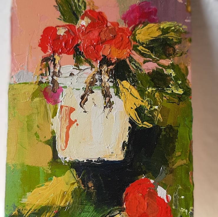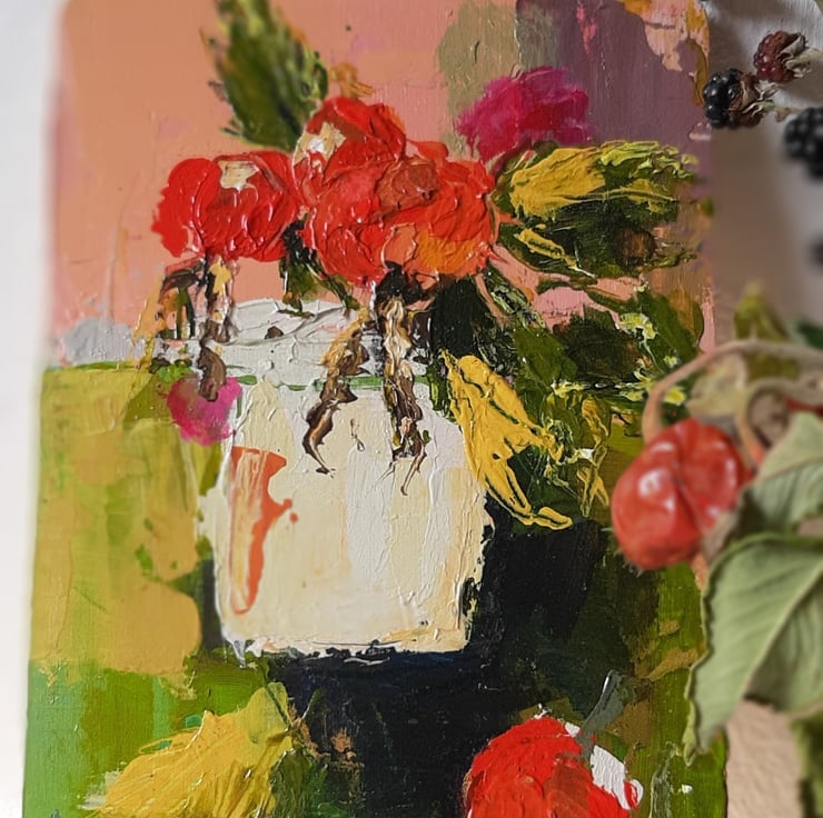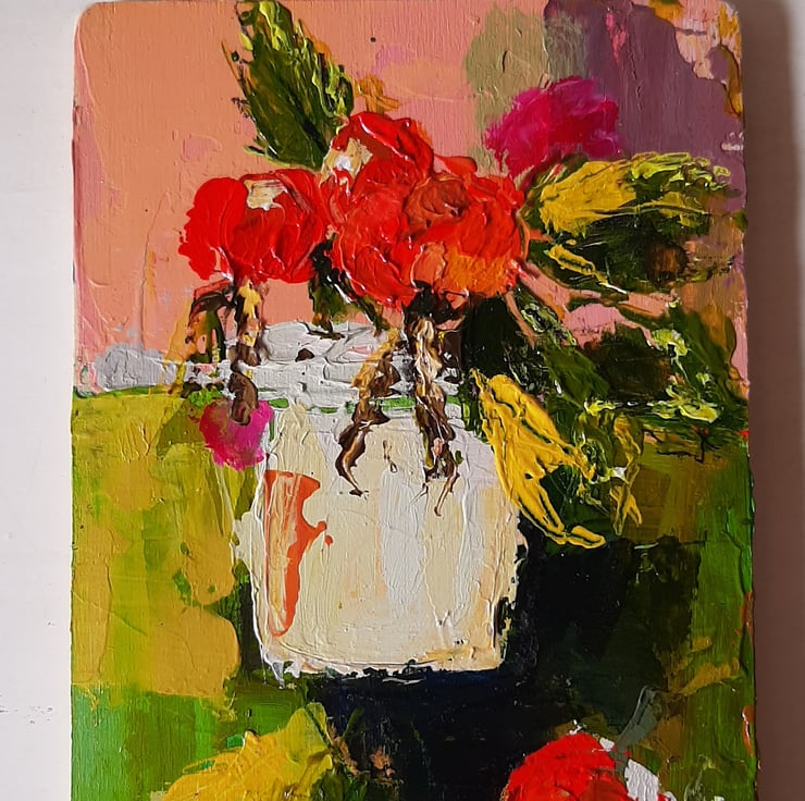 This beautifully rich textured painting by artist hesta singlewood sings of autumn .measuring 16 cm tall. Signed and lightly varnished. A celebration of autumn.