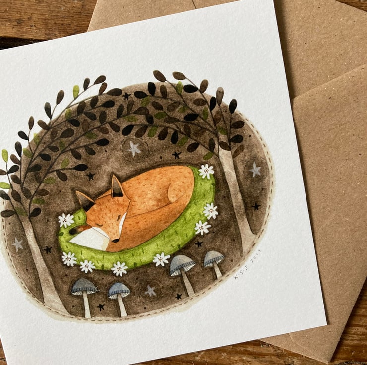 This is a greeting card designed by Three Acorns, 12.5cm square and blank inside, supplied with recycled brown envelope.