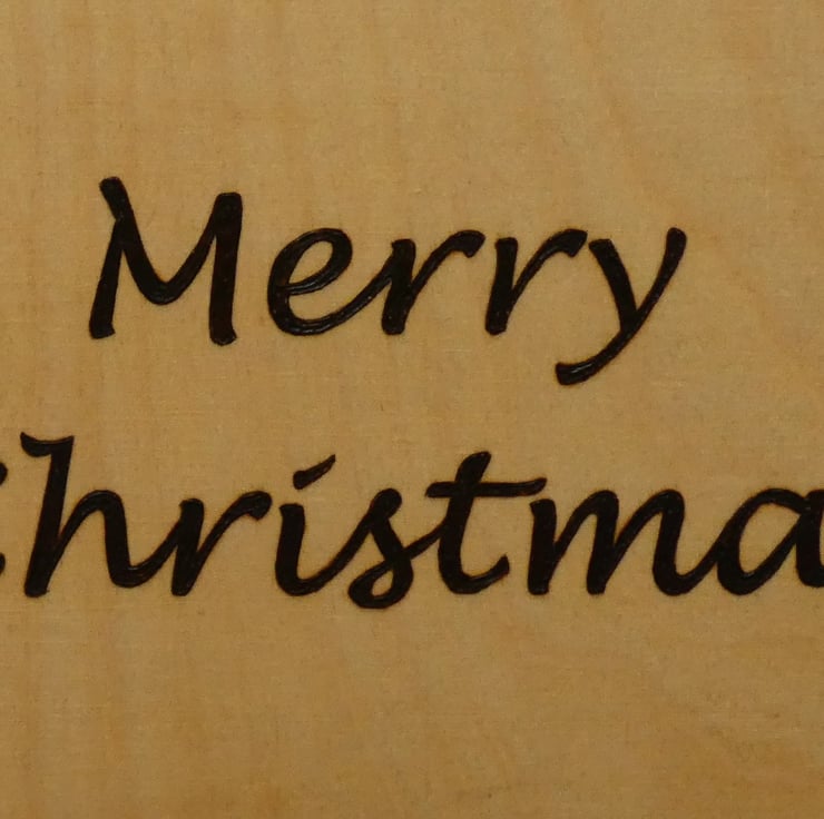 I firstly cut a suitable size piece of birch plywood and sanded it to produce a smooth finish. Plywood is wood which has been laminated together to produce a strong stable wood. Thin strips of birch wood laminate were cut to apply an edging to the plywood and were then attached to the sign, to seal the edges of the plywood. This is a common practice within carpentry, thus making it more pleasing to the eye. A template was applied to the wood and transferred using carbon paper. The outline of Father Christmas and wording was completed by using pyrography. Father Christmas was painted with acrylic paint. It was then finished with several coats of Danish Oil for protection. An attachment is fastened to the back to allow for hanging.