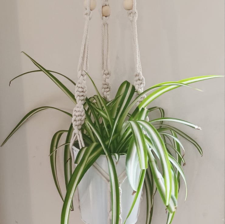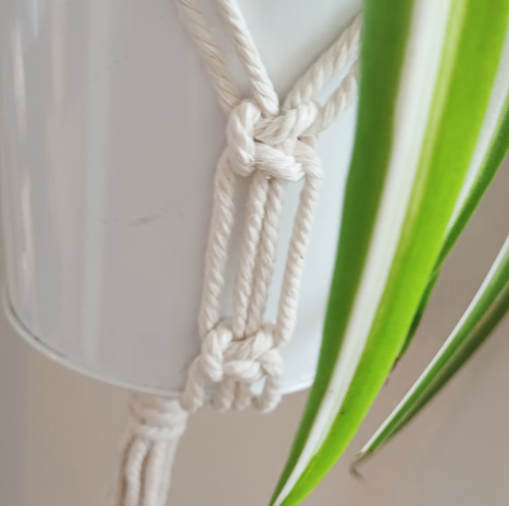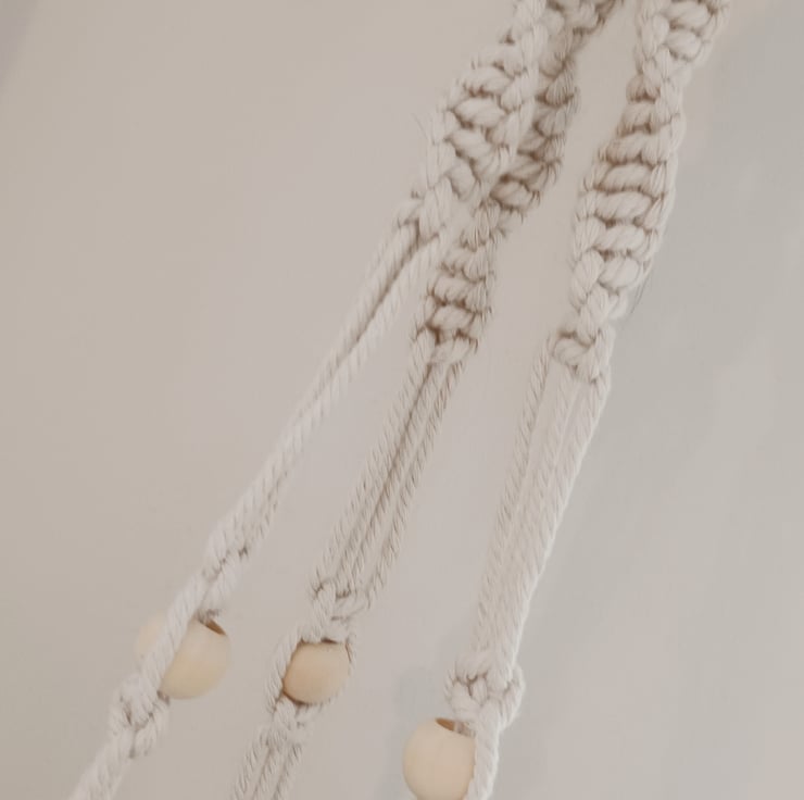 Macramé plant holders. Made from natural coloured cotton twine with wooden beads and a wooden ring for hanging