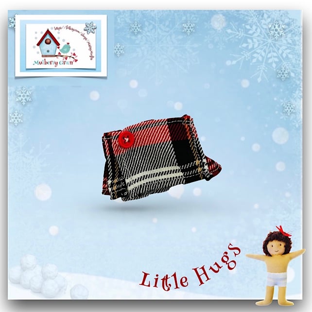 A tiny red, white and black tartan kilt, made especially to fit the Little Hugs dolls. The kilt wraps around and fastens with a little popper.