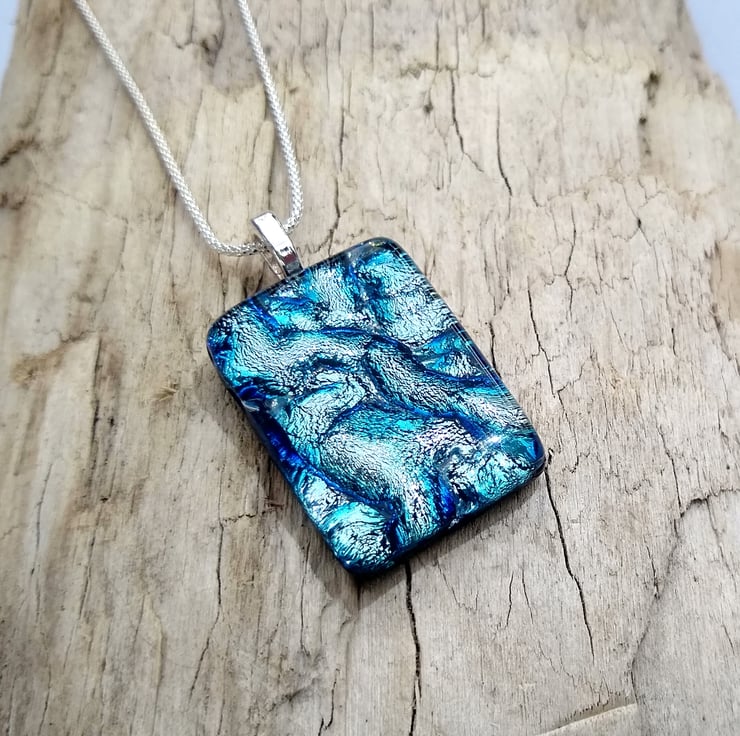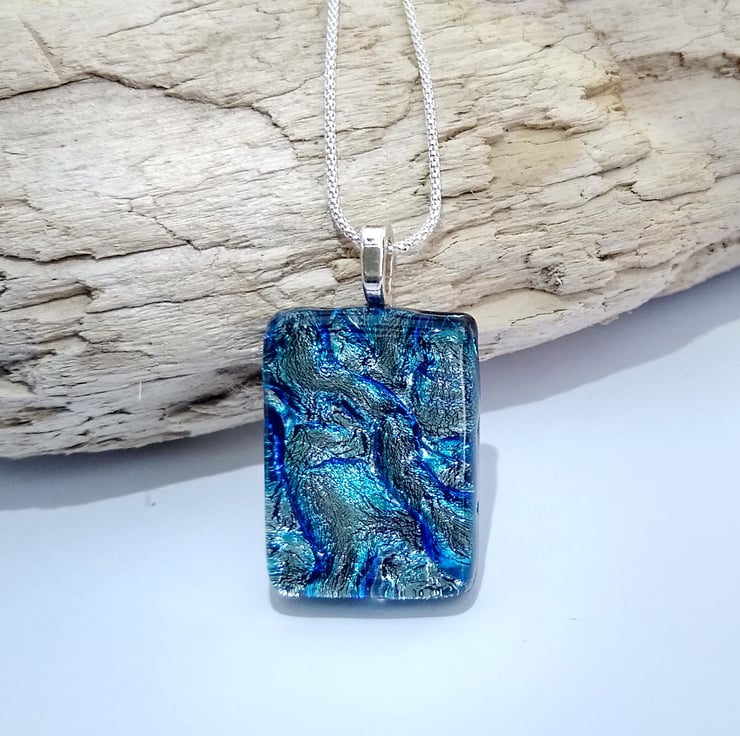 The dichroic glass used in this design adds a fantastic element of sparkle which brings the pendant alive.
